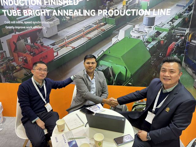 漢高科技亮相展會,與全球各地的不銹鋼制管企業進行技術交流。
