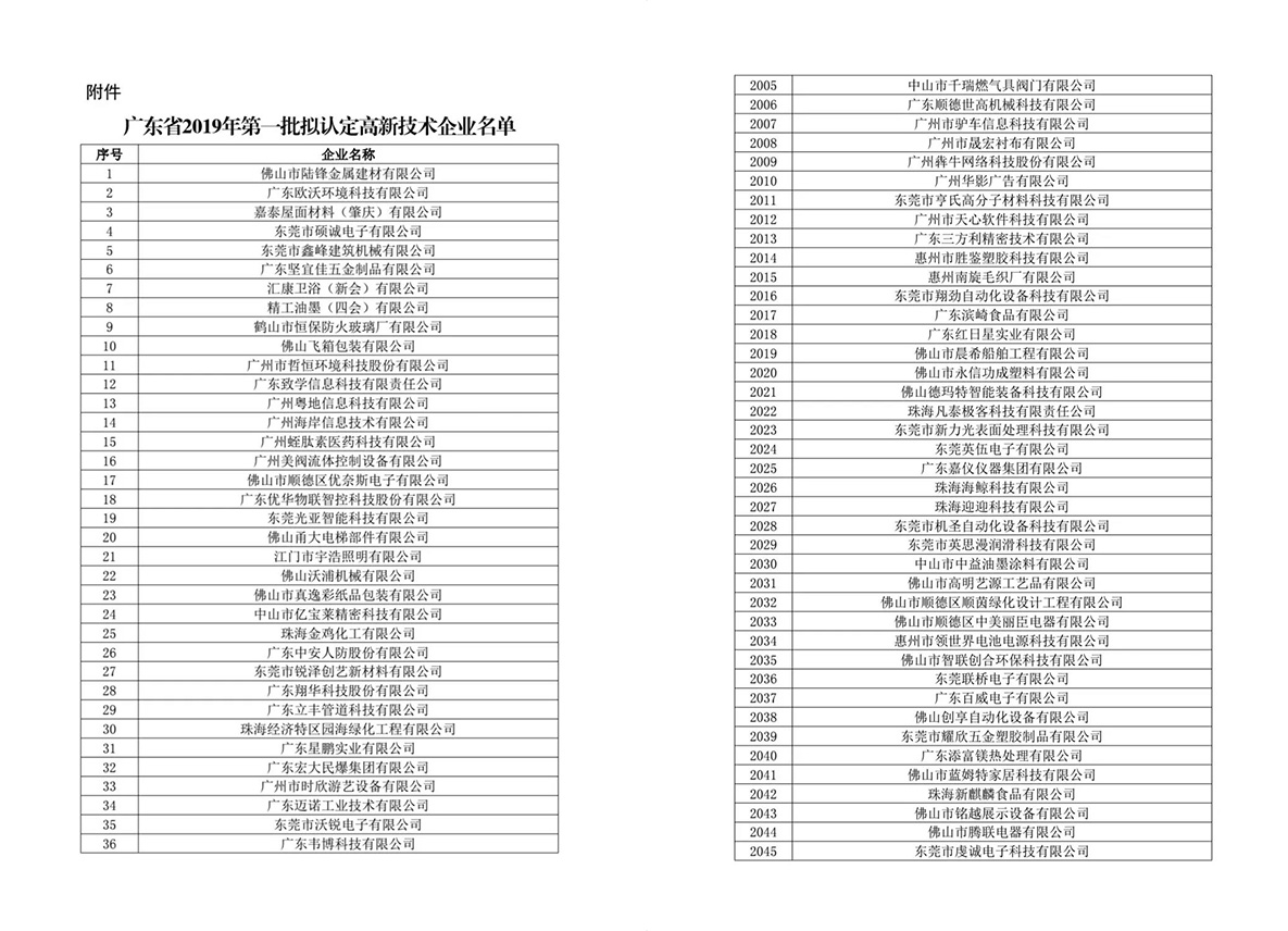 佛山市金屬材料行業協會常務理事單位--廣東順德漢高機械設備有限公司(編號:2006)、會員單位--廣東立豐管道科技有限公司(編號:29)榮列廣東省2019年第一批擬認定高新技術企業名單。